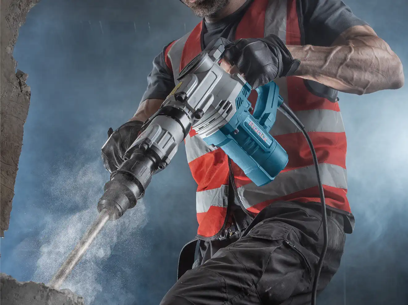 • محرك بقوة 1300 واط: يوفر 20 جول من طاقة الصدمات، وهو مثالي لتكسير الخرسانة والطوب والمواد الصلبة