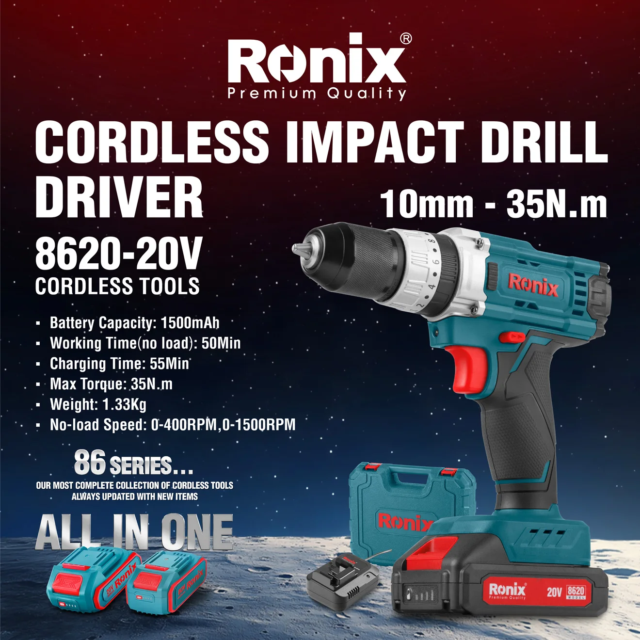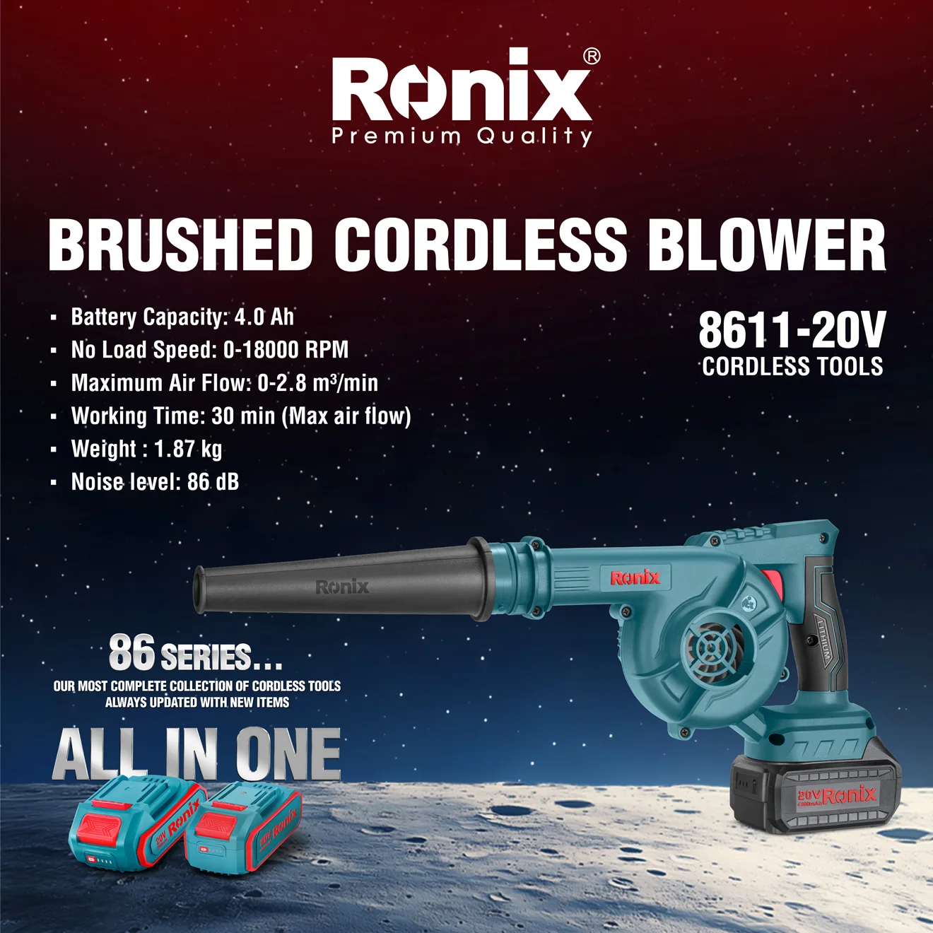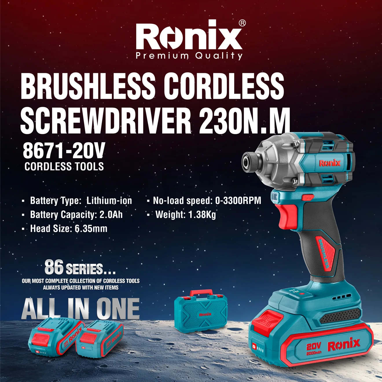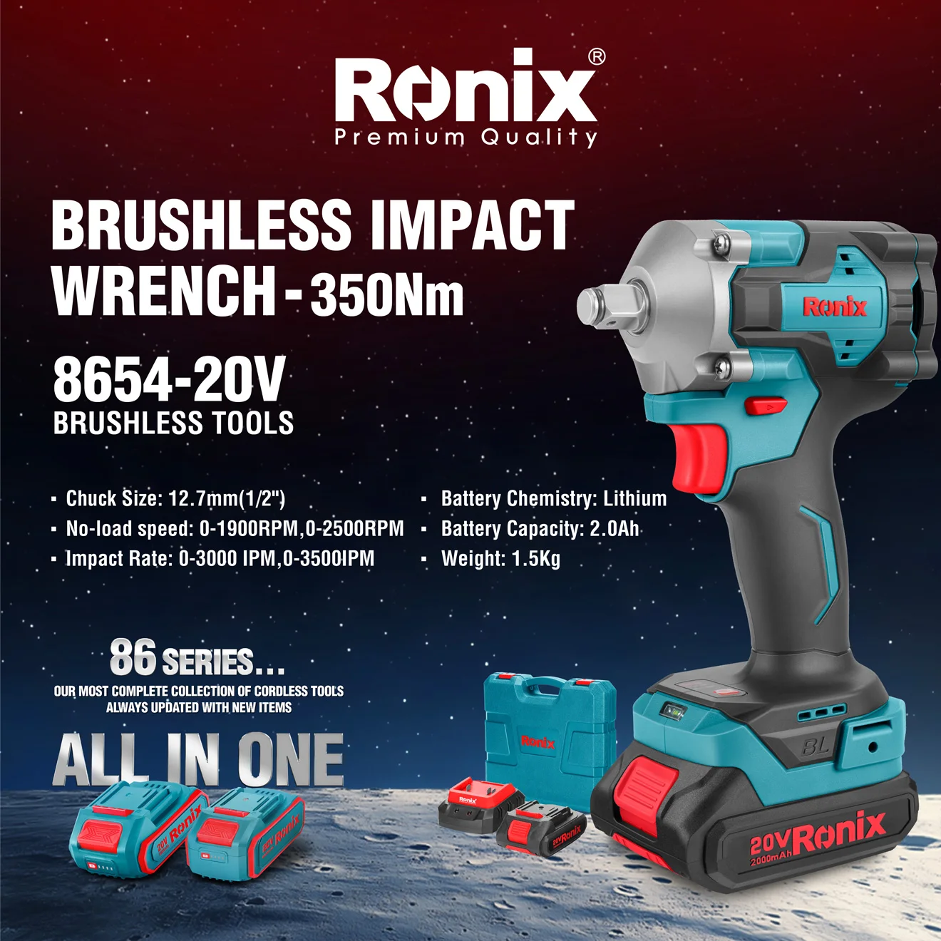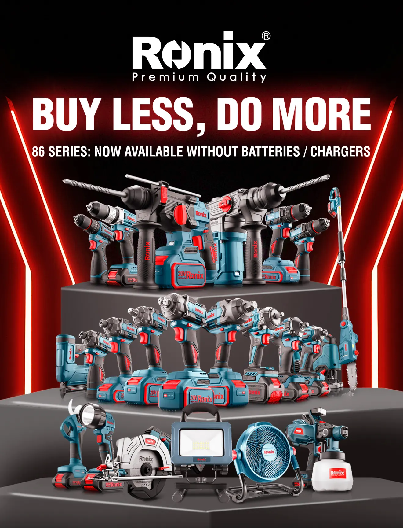 Catalogada como Serie 86 de Ronix, es exactamente donde destaca “la colección más completa de herramientas inalámbricas de Ronix, siempre esta serie está diseñada no solo para llenar, actualizada con nuevos artículos”, los estantes de los mayoristas con productos premium, sino también para satisfacer las necesidades cambiantes de los usuarios finales.