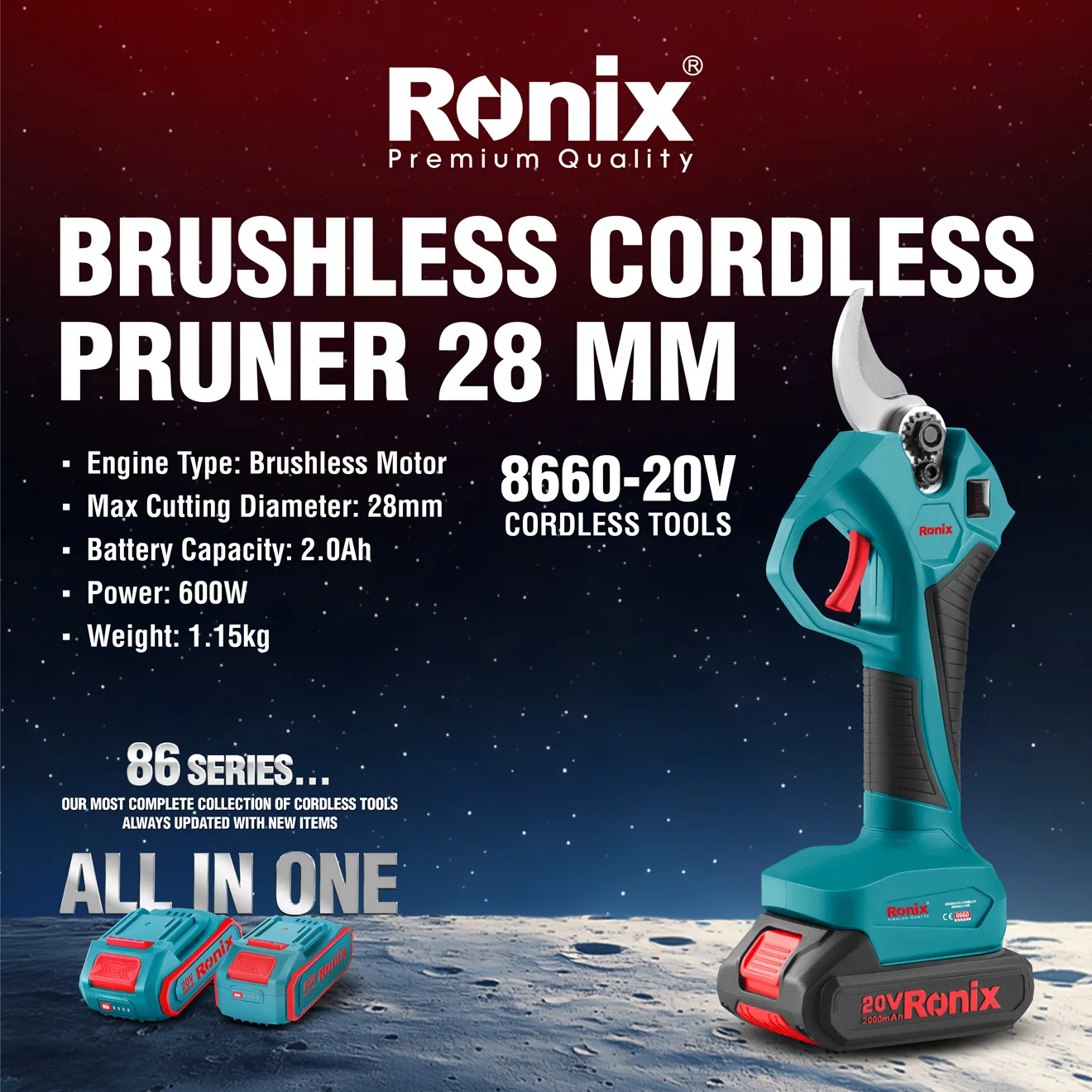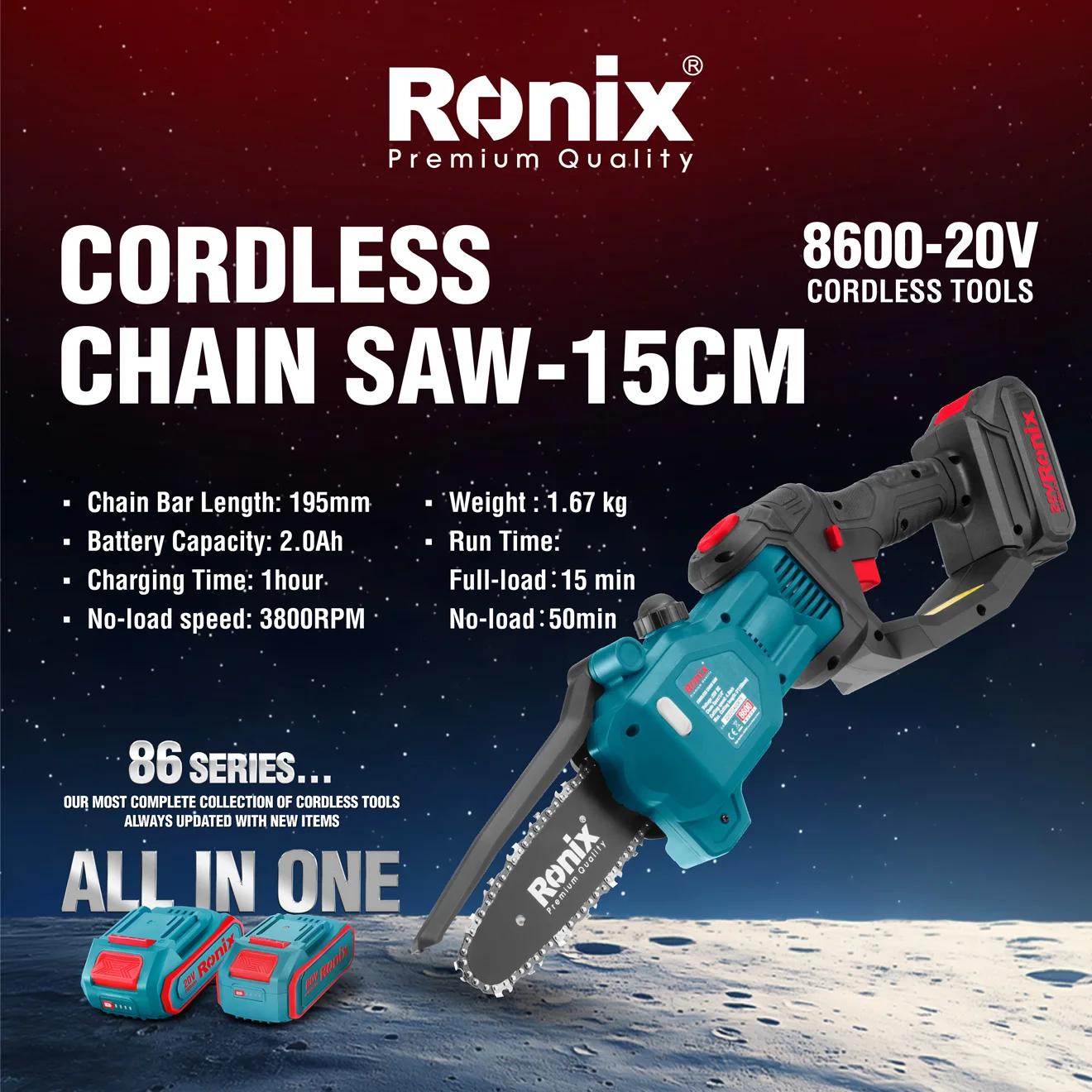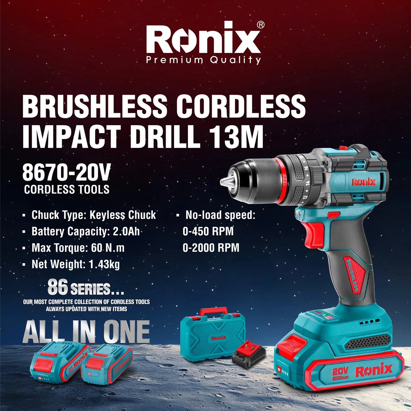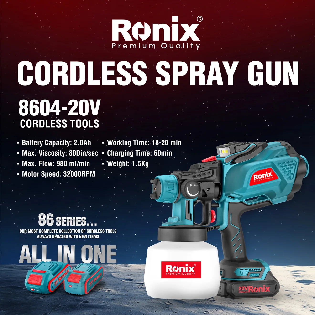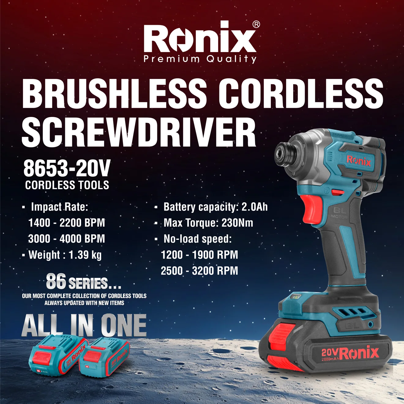 Catalogada como Serie 86 de Ronix, es exactamente donde destaca “la colección más completa de herramientas inalámbricas de Ronix, siempre esta serie está diseñada no solo para llenar, actualizada con nuevos artículos”, los estantes de los mayoristas con productos premium, sino también para satisfacer las necesidades cambiantes de los usuarios finales.