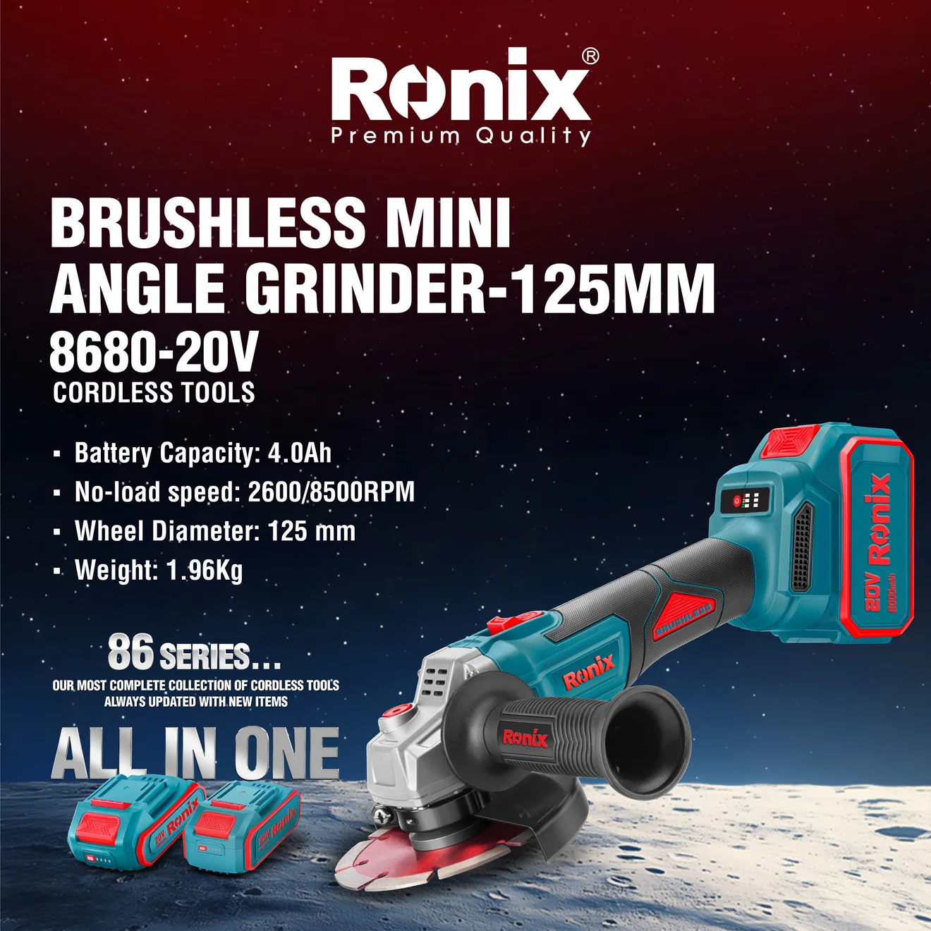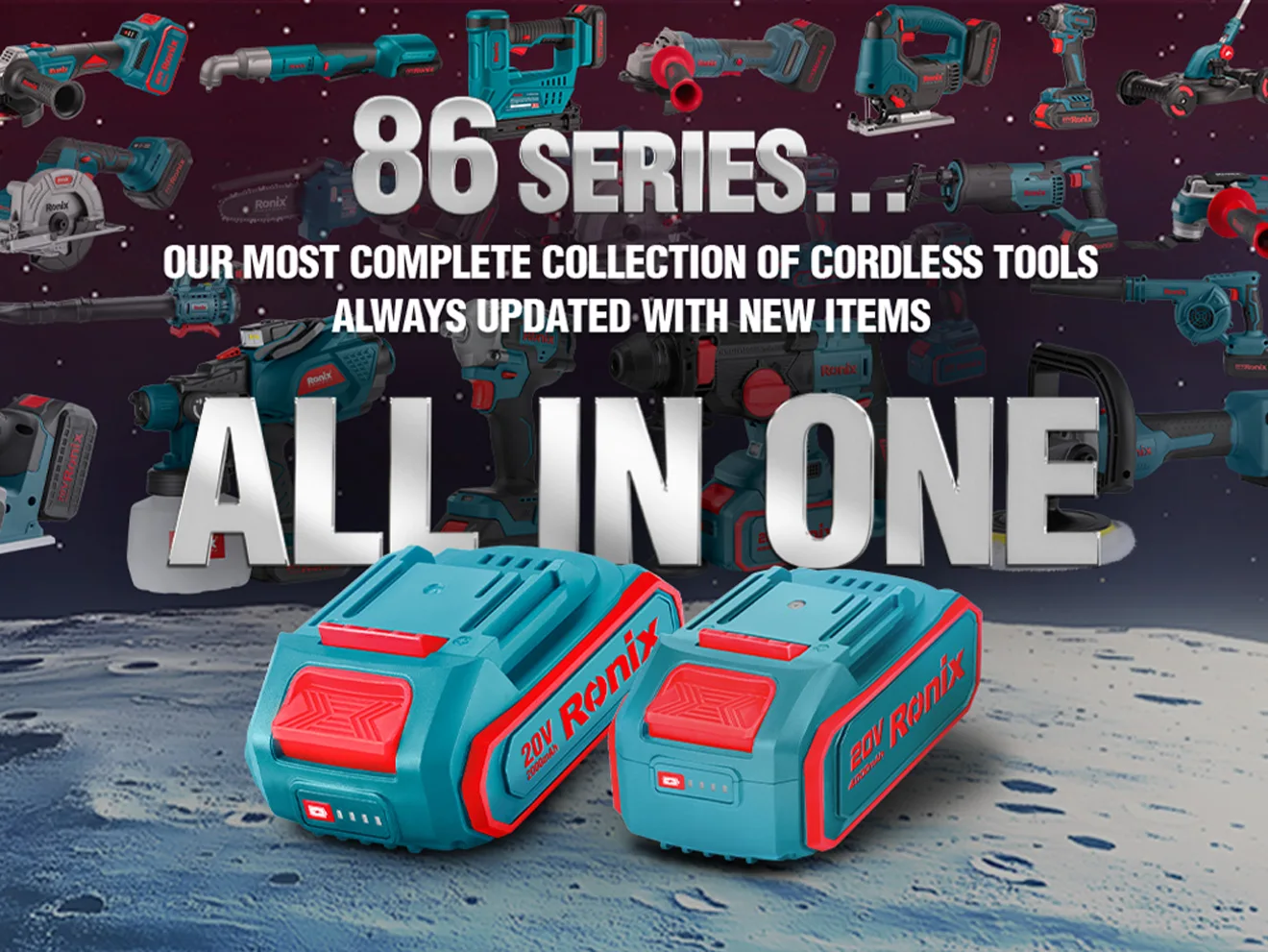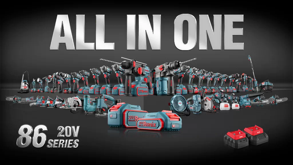 Al principio, el enfoque de la Serie Ronix 86 estaba en su innovador sistema de batería Todo-en-Uno, una característica que brinda comodidad y libertad al permitir a los usuarios alimentar cada herramienta de la colección con una sola batería.